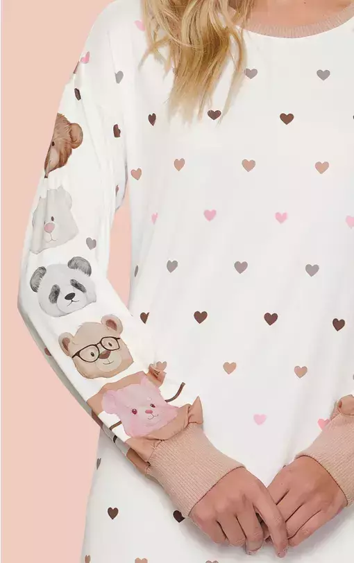 Os amigos ursos mostram a cara, literalmente, neste coordenado super querido e delicado. Tenha a companhia de Lulu, Ollie, Shadow, Nina e Steve e garanta um momento especial com essa família que é puro amor. Camisola Manga Longa de manga longa confeccionado em sublime touch, uma malha com toque suave de pele de pêssego. A peça apresenta gola e punhos com acabamento em ribana, proporcionando conforto extra.