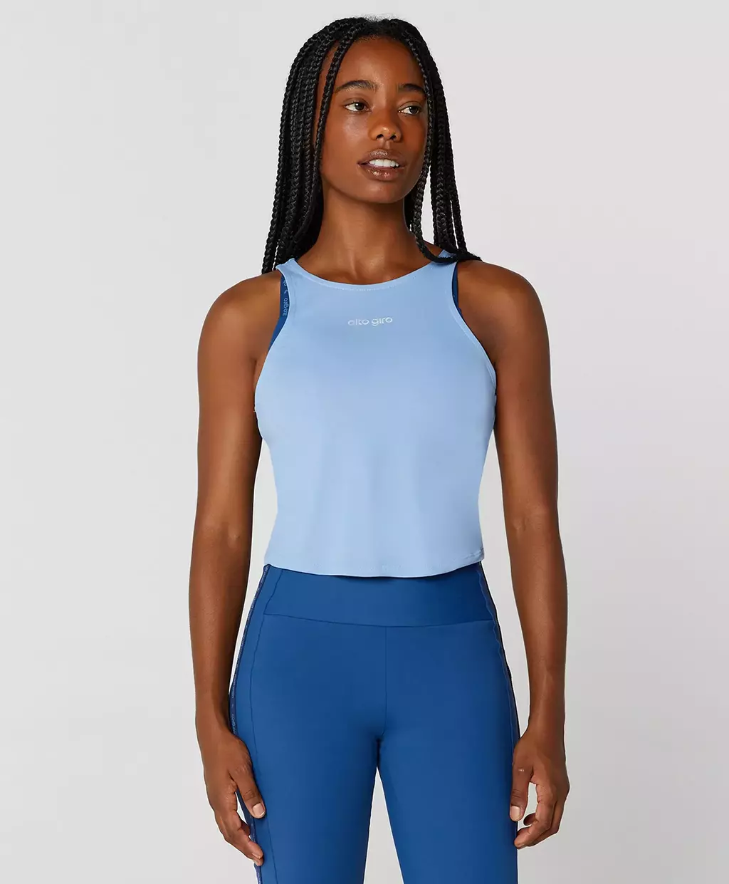 Características da peça - T-shirt manga longa com modelagem mais ajustada e comprimento até acima do busto, para ser usada em diversas composições. - Regata com decote fechado e visual bastante cavado e feminino. Possui modelagem ajustada e comprimento cropped. - Use junto com a t-shirt, para composição cheia de estilo. O detalhe vazado que forma na sobreposição confere um visual bastante moderno. - As peças possuem detalhe de personalização em refletivo; - Confeccionados em tecidos de poliamida, de toque macio, proteção UV. É de fácil cuidado e rápida secagem. Diferenciais da peça - 2 EM 1 - Proteção UV - Detalhe refletivo - Easy care